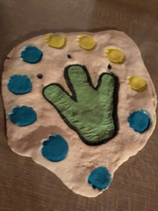 So wurde zu Hause gerätselt, geknetet oder ein echt cooler Dinosaurierabdruck aus Salzteig gemacht.